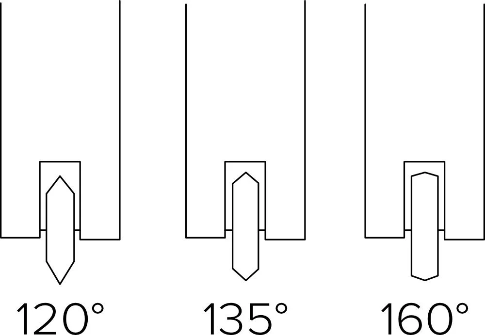 Medium angles, 135°-145°, are your most versatile angle and offer a balance between depth and control allowing it to provide clean scores with minimal force on a wide range of glass thicknesses (4-8mm).