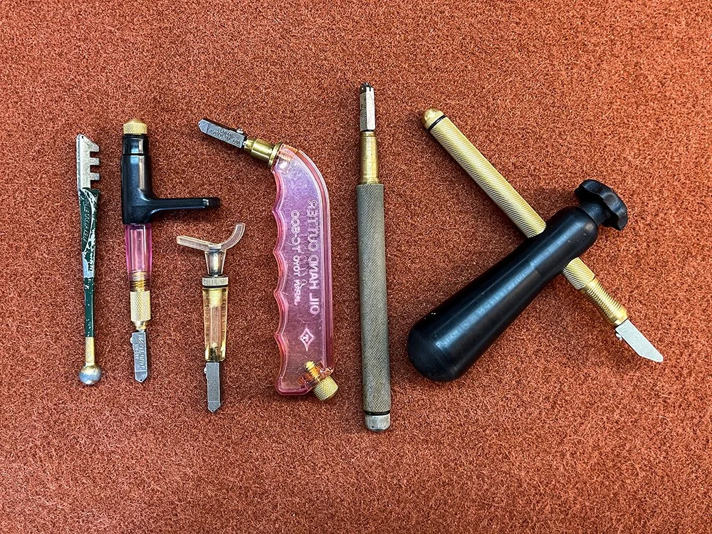 Glass Cutter: This is a handheld tool that scores the glass. Industry standard is to use a cutter with a tungsten carbide wheel due to it’s durability, hardness and moderate cost, but there are also glass cutters made with steel or diamond cutting wheels. There are a few things you want to consider when choosing a glass cutter: