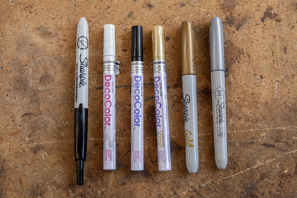 For darker glass we use the metallic sharpies—I wish these came in the extra fine tip and/or just retractable.